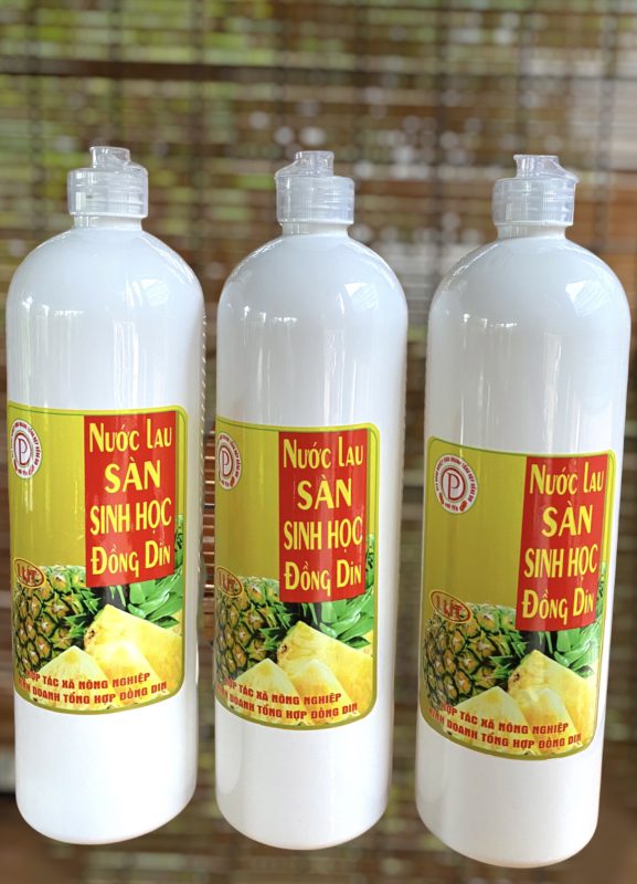 Sản phẩm Nước lau sàn sinh học Đồng Din là sản phẩm hoàn toàn ủ lên men tự nhiên từ các phế phụ phẩm của khóm không sử dụng hoá chất để sản xuất.